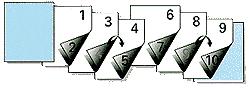 - При використанні функції "сортування поворотом" апарат копіює багатосторінковий документ у підібрані комплекти (пачки), розташовані так, що вони чергуються в стосі, розташовані одна поперек іншої (хрест-навхрест). Достоїнство цього методу в тому, що такий пристрій як сортувальник не потрібний для розкладки копій в пачки.